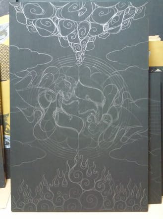 画家ー蟲人は蛾と仏画を融合させた創作画ー神仏画を描いており、近年はヨーロッパを中心にオーストラリア、カナダ、アメリカ、中国など海外の展覧会に参加し作品の展示・販売を行っております。