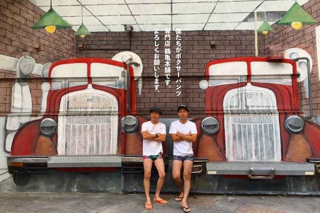 ボクサーパンツ専門店 鶴亀本舗の川畑和輝、伊禮翔哉と申します。沖縄出身の2名で2017年に立ち上げ、