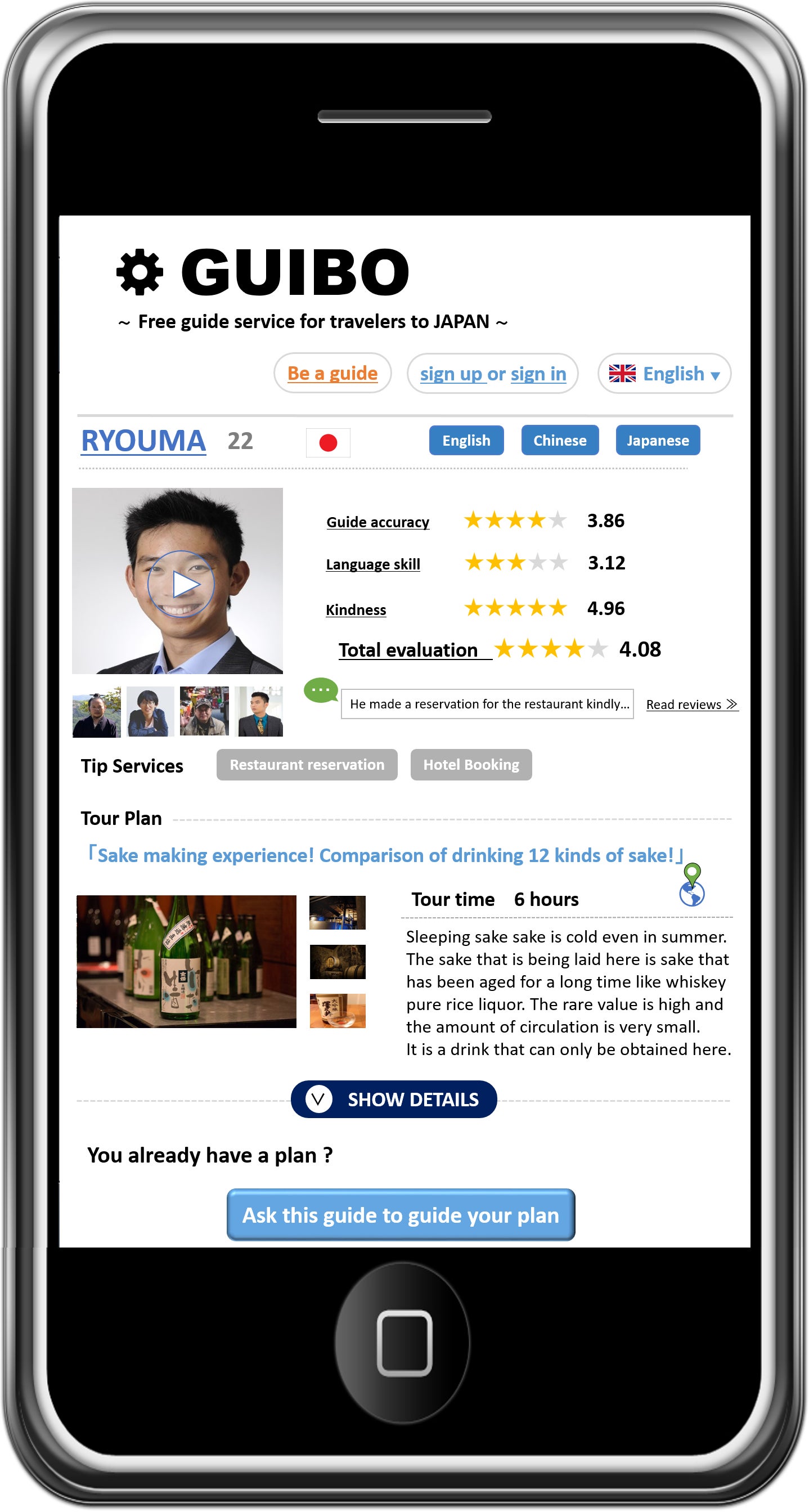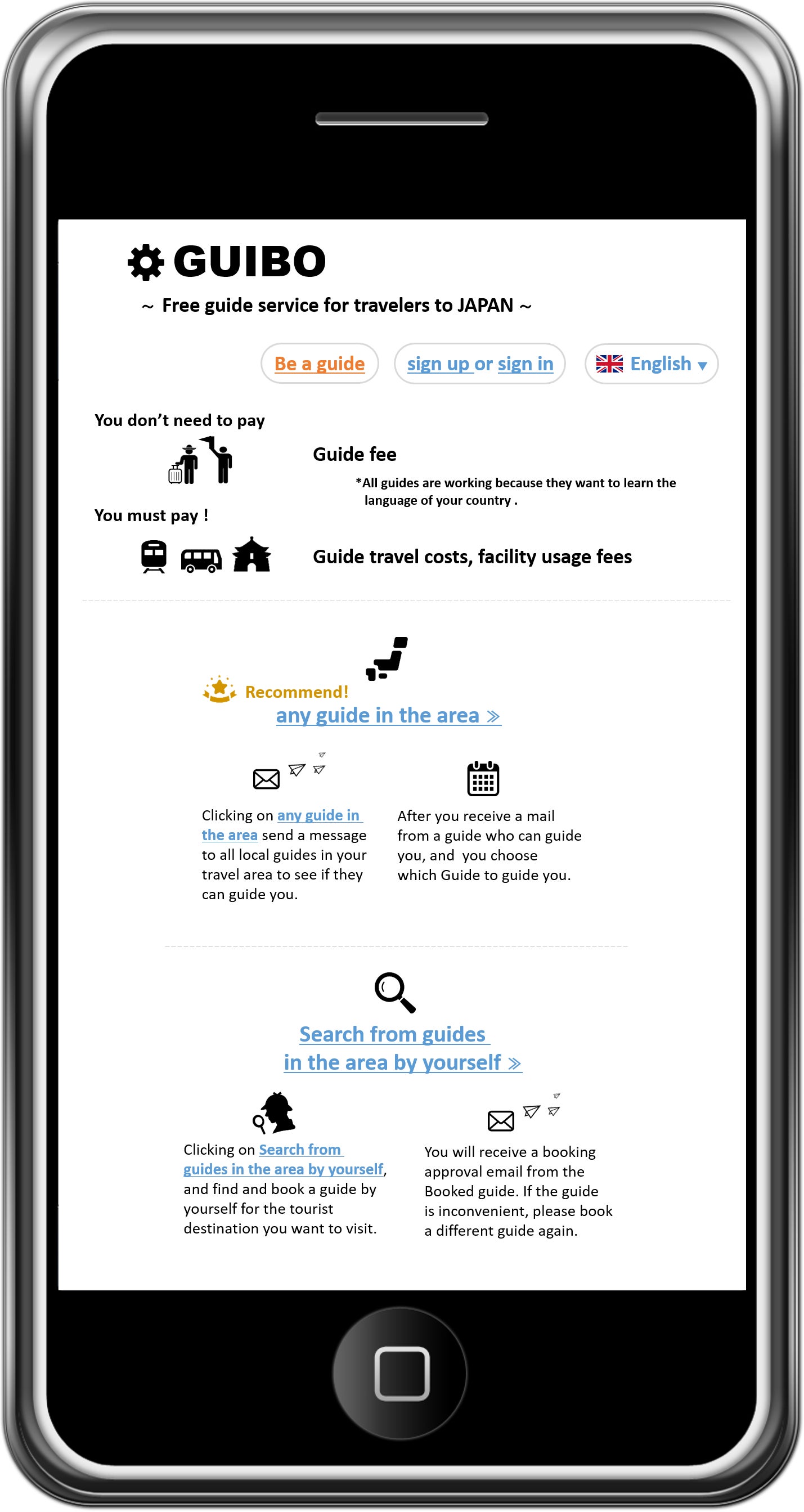 下図は、旅行者がガイドをどのように選ぶか、の選択画面に表示させる説明ページです。
