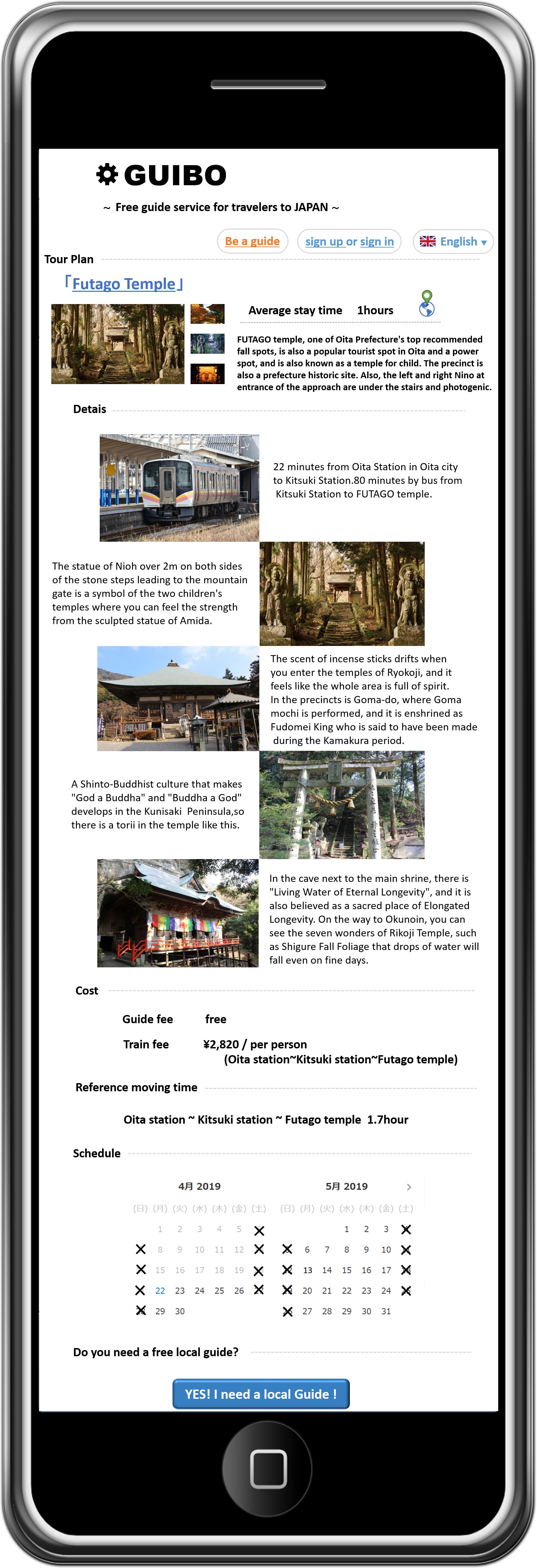 *もちろん最初からオリジナルツアーを用意するのは難しいと思いますので、GUIBOが地元の定番ツアープランも自治体と協力し、用意しています。