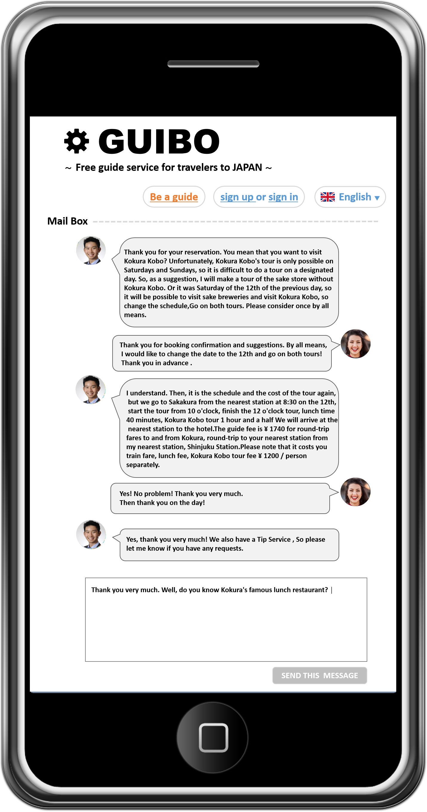 旅行者がガイドを予約し、ガイドが予約を承認した場合、ガイドとチャットすることができます。