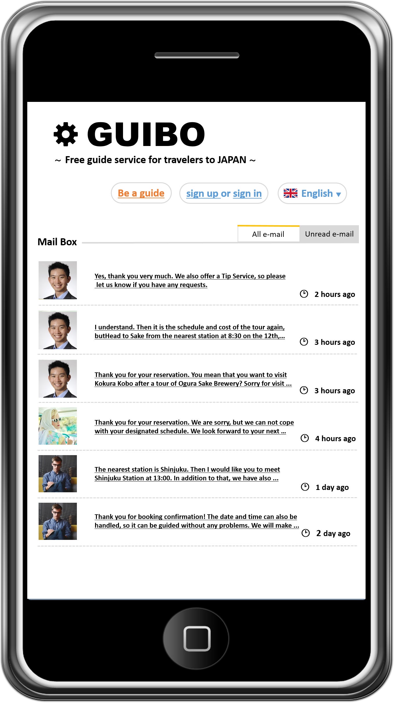 「自分でガイドを選ぶ」を選択した旅行者から見て、ガイドのページはこのように表示されます。