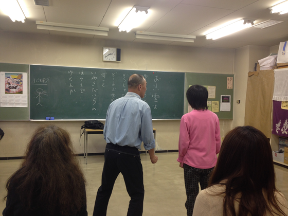今日は「朗読劇」の初の顔合わせと初稽古でした!演出の深山義夫さんから、今後の稽古についての説明があり、稽古時間や上映時間の希望などを参加者から聞く間に、最初は緊張していらっしゃった皆さんでしたが、段々表情も朗らかに。緊張と緩和の稽古や重〜いバケツを持っていると想像して、相手に渡す稽古など、しばらく体を動かした後は、腹式呼吸の稽古。カメラを持っている私もつい一緒にお腹をへこませたり膨らませたり。そして黒板に書いてある文章を、大きな声で読む稽古に。皆さん、最初は少し遠慮がちでしたが、繰り返す度に大きな声が出るようになり、積極的に稽古に臨んでいらっしゃいました。深山さんからも最後に「安心しました。皆さん、あれだけ大きな声が出れば大丈夫です。」との感想があり、約1時間半の初日は終了です。来週から基本的に毎週日曜が稽古と決まりました。そして、いよいよ台本が出来上がってくるそうです!楽しみです!
