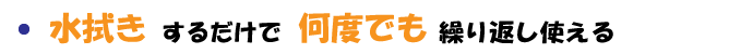 ホコリやゴミが付着しても水拭きするだけで粘着力が回復し、経年劣化するまで何度でも使用出来ます。