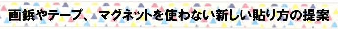 今回従来のテープやマグネット、画鋲で固定する方法を一新したく本製品を開発しました。テープやマグネットなどの補助材を使わずにもっと簡単に固定する方法はないか、と言うお客様の声から生まれた文具アイテムです。