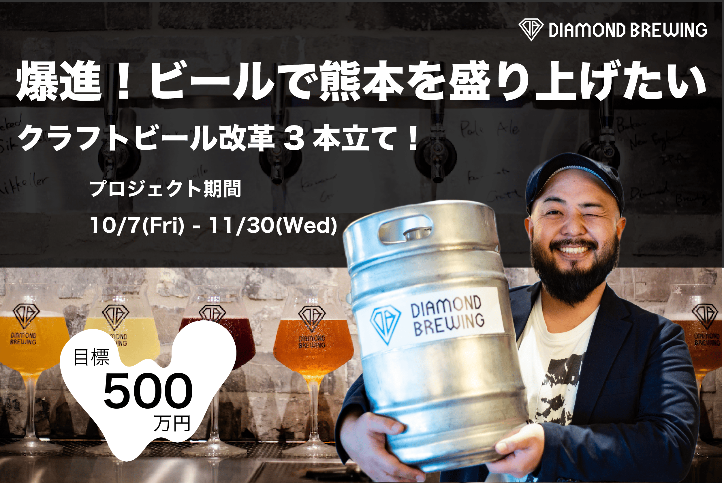 多くの方々の後押しもありまして、プロジェクト「爆進!ビールで熊本を盛り上げたい」をリリースする運びとなりました。支援の期限は11月30日(水)です。いつもより少し長めの期間をとり、今まで以上の訴求力を持って取り組んでまいります。