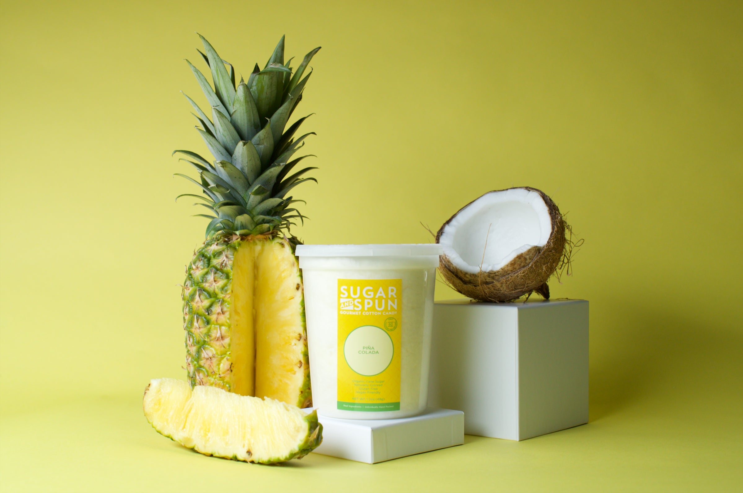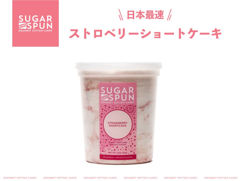 オーガニックシュガー、フリーズドライフルーツ、タピオカでんぷんなど天然由来の原料を数多く使用した、甘いだけじゃない上品かつナチュラルなコットンキャンディなのです。これら天然由来の原料が醸し出す優しく口の中に広がる味わいはSUGAR&SPUNの真骨頂です。