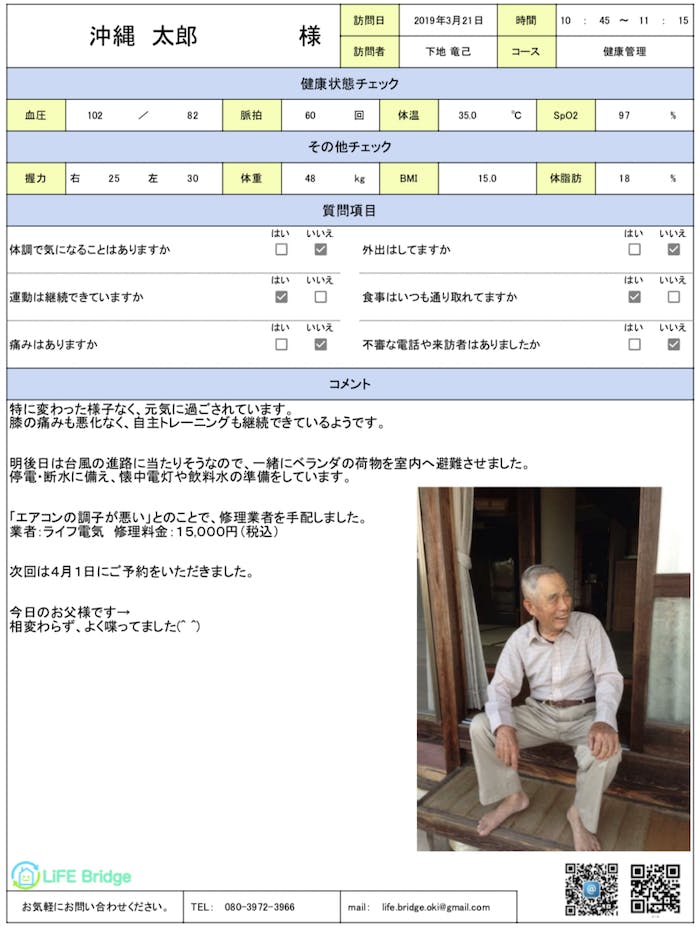 離れて暮らすご家族さまへも、訪問時の様子をレポートにし、メールで近況報告します。