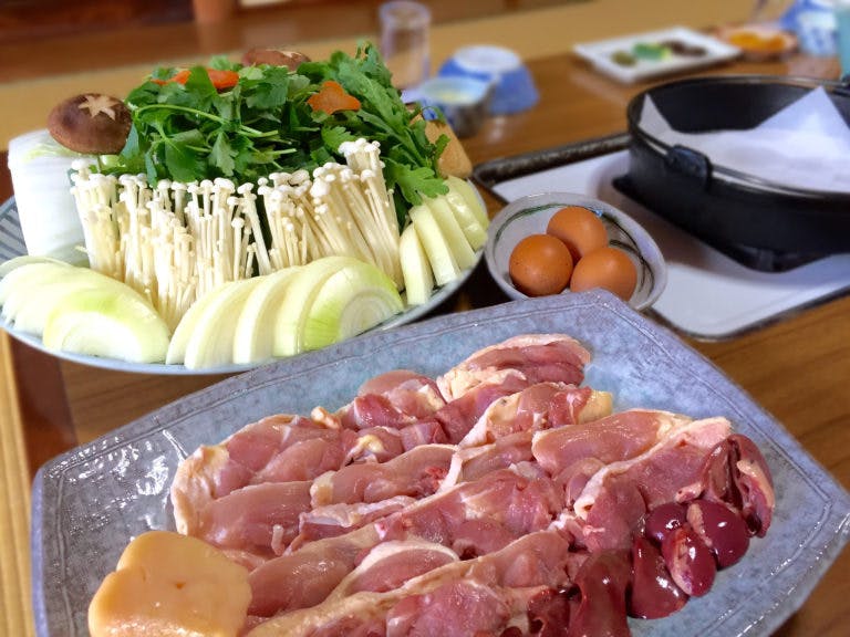 ・お鍋内容;京赤地鶏(200g)、旬のお野菜、焼き豆腐