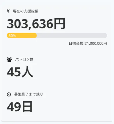 目標金額の30%に達成することができとても嬉しいです。