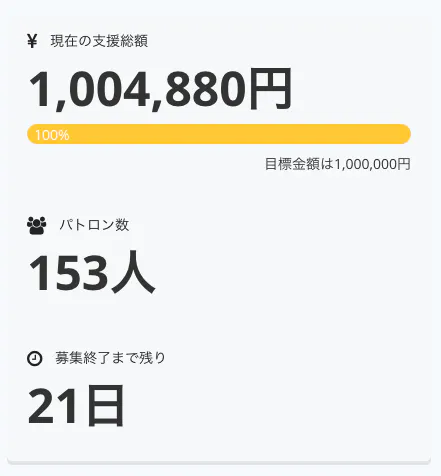 本日、目標金額を達成することができました。
