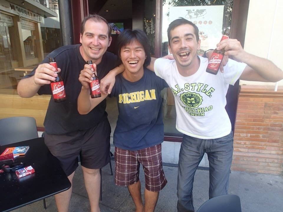 お酒を飲みながら地元の人と笑い合っていました。