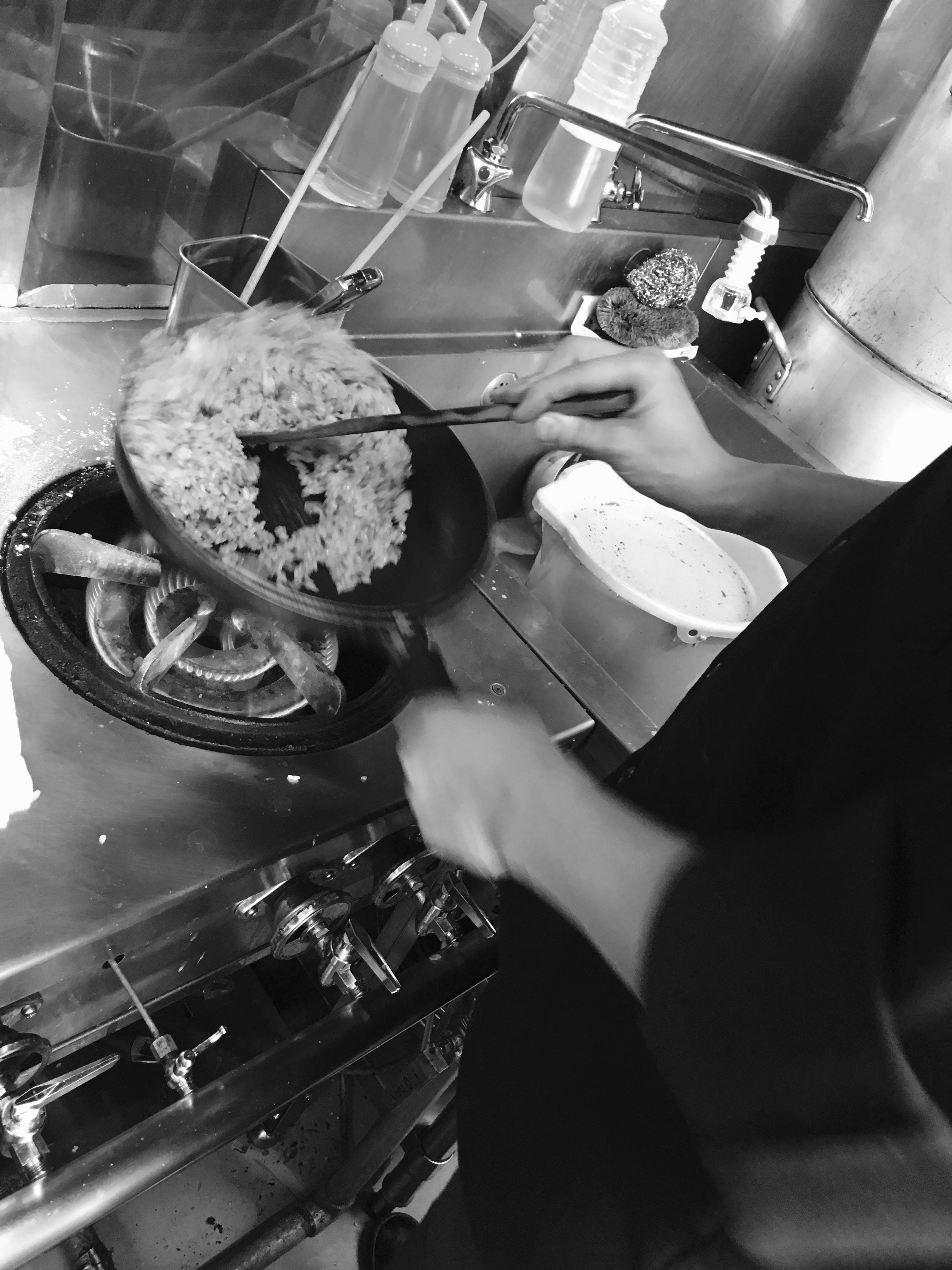 チキンライスを作る際は、ピラフを炊いて、パラパラに仕上がるように一晩ご飯を寝かせる。