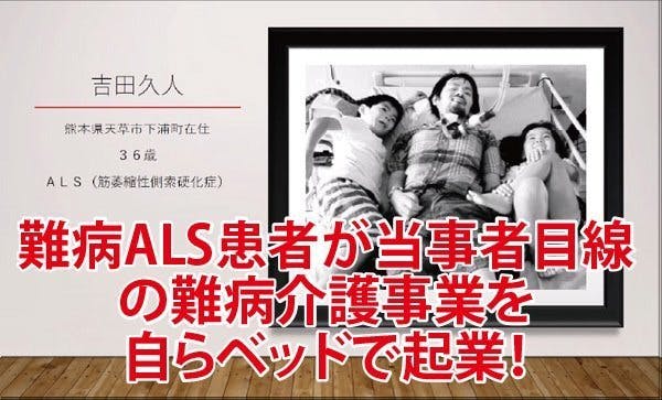「Stand Up in Bed~ベッドで起業。寝たきり難病だからこそ起業して生きる喜びを発信しつづけたい!:筋委縮性側索硬化症(ALS)患者自身が立ち上げる、ALS等重度障がい者向け訪問介護事業所設立プロジェクト~」