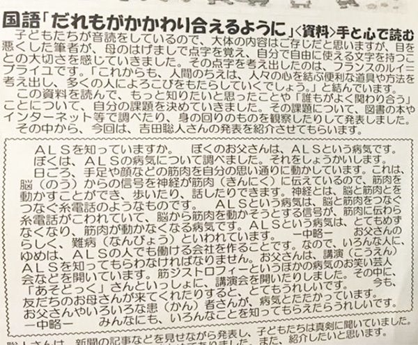 現在の日本において、ALSの患者の7割が、人工呼吸器を付けず死を選択しています。それは、人工呼吸器装着後の24時間365日の介護体制に対する不安や、そこまでして生きても、という思いから来ていると思います。特に田舎の地方では、生きることを選ぶことは難しいことです。天草にも多くのALS患者がおられますが、延命をし、在宅生活をしているのは私だけです。