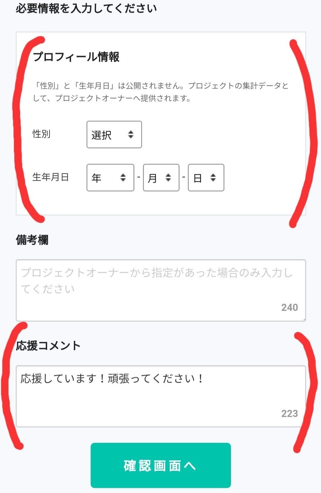 確認画面へ進んでいただき、ご確認いただき次第ご支援完了となります!