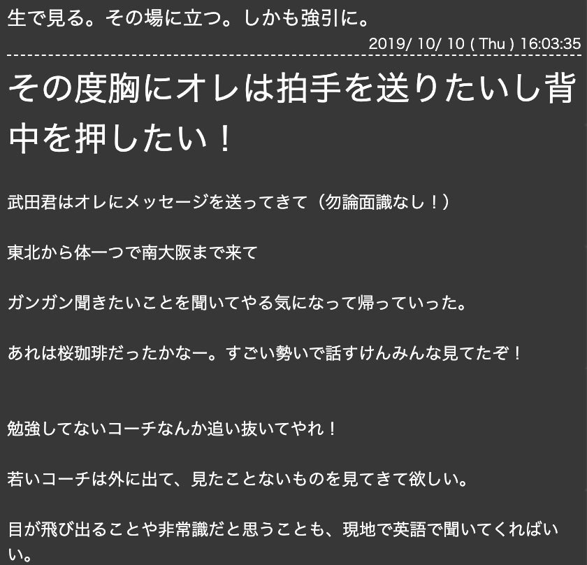 先日(10月10日)の浅野コーチのブログ(アサノエンターテイメント)に掲載いただきました!