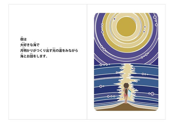 暖かいご支援をくださってる皆様。そして興味を持ってくださってる皆様。 本日目標金額の半分迄集まることが出来ています。本当にありがとうございます。 先日聾学校へお子さんを連れて行ってるお母さんから嬉しいお言葉を頂きました。「見せたい本はいっぱいあるけど、こうやって実話を元にした絵本はなかなかないから、同じ耳の聞こえない子供達にも大きな感動になると思うの。だから、沢山の人に教えたいな!」と。そうなんです。 知ってる方もいるかと思いますが、実はこの絵本のストーリーは私を元にした実話でもあるんです。 もちろん中には神話も出てくるのですが、もしかしたら深い関係があるのかもしれないよ?と思わせるストーリーにもなっているのです。 そして私の周りの友人のアドバイスや、デザイナーのい志ざき学くんのご友人などの暖かいアドバイスを経て、仕上がっているのです。 2歳の時に聞こえないと分かっても、本人である私はそんなに聞こえないことが大変だとはわからないのです。 ただなんとなく、不便だな?とか周りの行動が、なんで??と思うことをしたり、音楽の授業が苦手だったり、団体での行動が同じことを出来ない為に、もの凄く疲れるぐらい。 やがて中学生から高校生になるころ、色々気づいてきます。 やりたいことが出来ないもどかしさや責任感があることをしたくても「聞こえないでしょ?」と諦められてしまうことが多かったり。そんな中どうして「聞こえないこと」への意味を探った日々があったか。 そんな時気づいたら私はこうしていた。お花やお隣のわんちゃんに話しかけ、誰にも見られたくない涙を流すときは土手や海に行って、答えを探すのです。 応えてくれるのは風だったり、波だったり、月でした。 特に、初めて小笠原に一人旅に行ったときは、月が唯一の友達でした。自分を変えようと出たこの旅。最初は島だけに、すんなり友達が出来なくて、アルバイトの帰り道1人で歩くのですが、道は真っ暗。街頭もないので、恐いほどに。 心細くなり空を見上げたら無数の星が広がっていて、さっきまでの恐怖心は一気に消され、見入っていました。そして気づくと、実は真っ暗な道ではなくうっすらと明るいことに気づいたのです。 自然や生き物が教えてくれた様々なものは私の人生を助けてくれ、応えをくれます。 「聞く」は当たり前に聞くのではなく心に気づいて「きく」だと私は思うのです。 そうすることが出来た時全ての皆さんが幸せだと言うことに気づくでしょう。 そして本当は全ての人達は自然と共に幸せな存在として一緒に生きてる。 「ゆめぇちゃんの探し物」はそう言うことを伝えたい絵本なのです。 どうぞみなさんにお知らせしてくださる様この絵本が世の中に生まれます様、宜しくお願い致します。 写真は電子書籍本での一部です。このシーンなんと本当のこの写真があるのです。ちょっとネタバレですが、がくくんが見事写真も見ずに記憶の中で描いてくれたお気に入りのシーンの1つです。