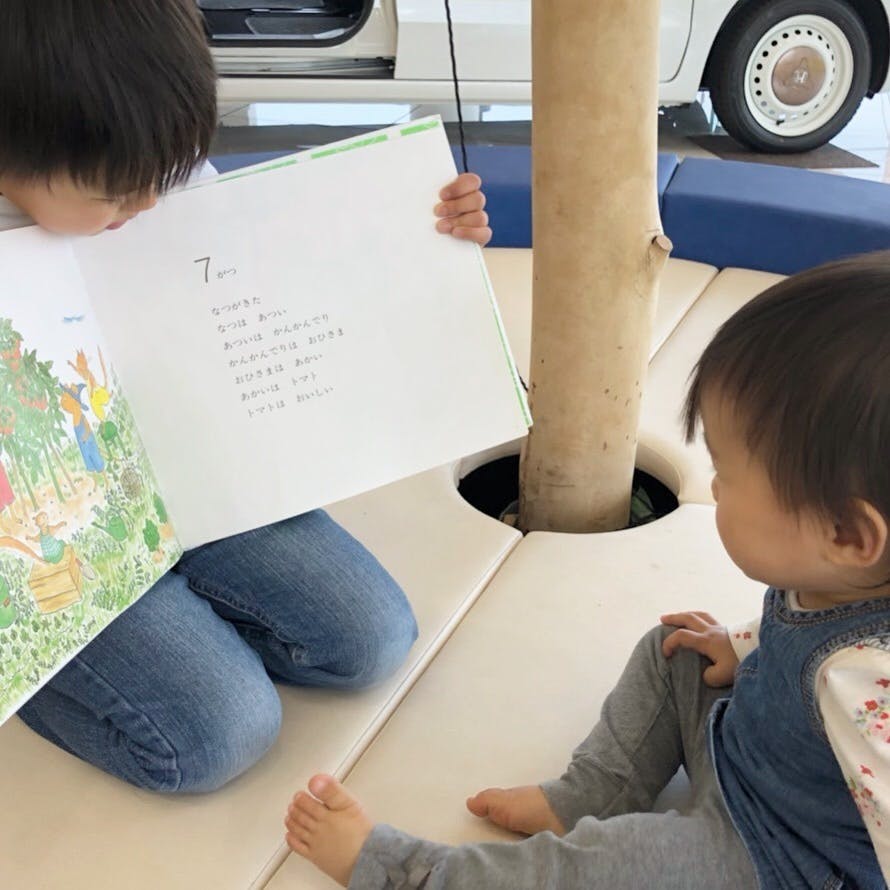 ②1ヶ月間、子どもたちは絵本を楽しむことができます(絵本を家に持ち帰ったり、貸出はできません)。