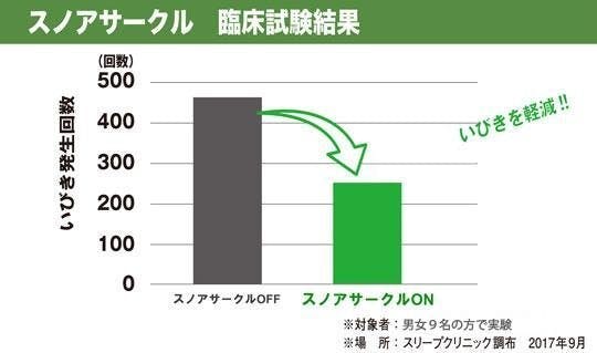 日本の医療機関においてスノアサークルを使った場合と使っていない場合においてのいびき回数の臨床試験を実施しました。
