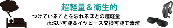 イヤホンタイプは取り外し可能なイヤピース方式を採用。アイマスクタイプは、センサー部分が取り外し可能となっており、外していただくことでアイマスク部分は洗濯可能なため、いつでも清潔で衛生的にご利用いただけます。