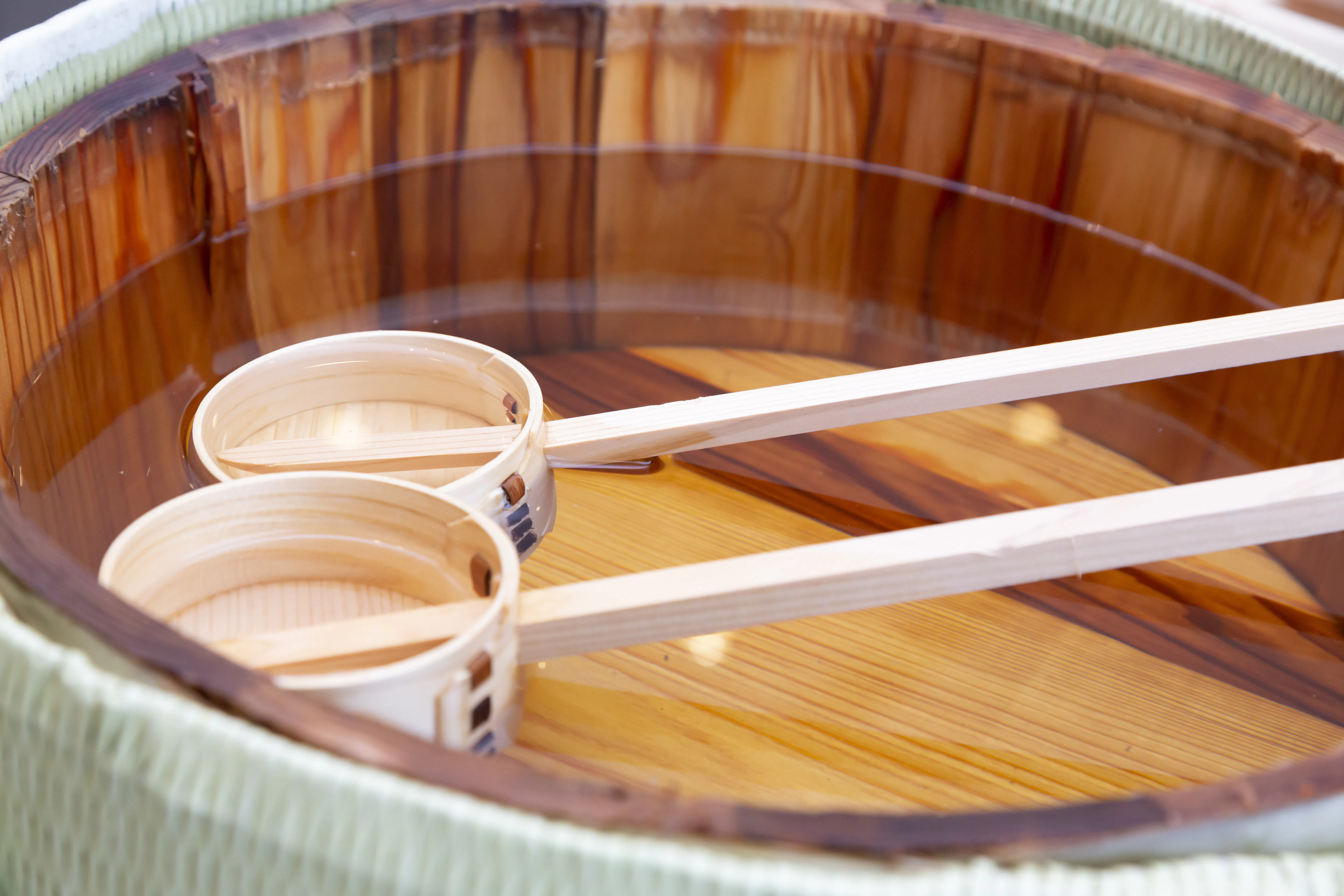 杉のマドラーで燗をつけると、本来は時間をかけて出来上がる、