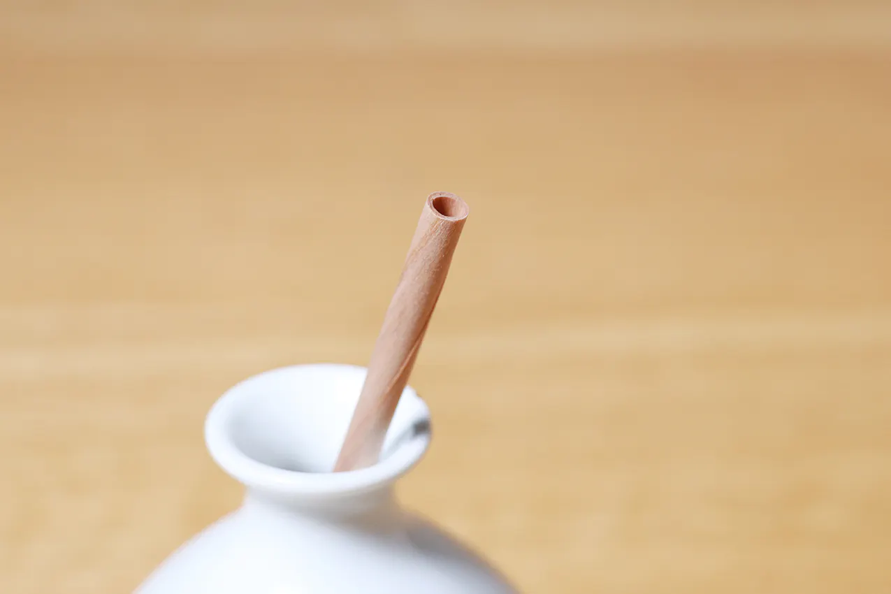 ストロー状にすることで、お酒に杉が触れる表面積を