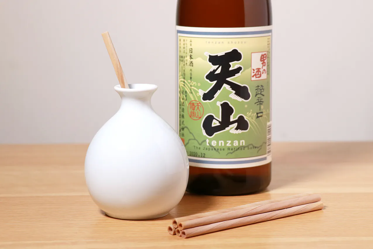 杉のマドラー燗酒に合う佐賀酒『天山酒造 超辛口 天山』
