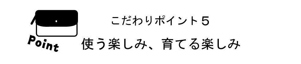 経年変化と一言で言ってもなかなか伝わらないかもしれませんが、具体的に言うと、使い込んだ時間と共に革が柔らかくなり色艶が増してきます。使う人によって、変化の具合は異なり、自分で革製品を育てていく喜びがあります。