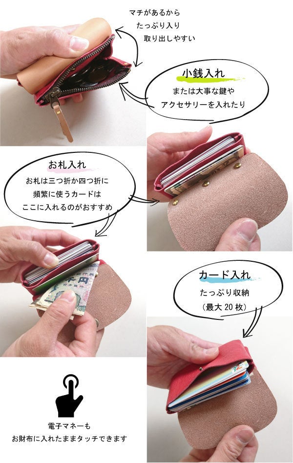 「財布としての機能、使いやすさや容量を減らしてまで財布を小さくする」というコンセプトではなく、バランスよく、必要なものは必要量入り、出来る限り小さく、出来る限り使いやすい財布。