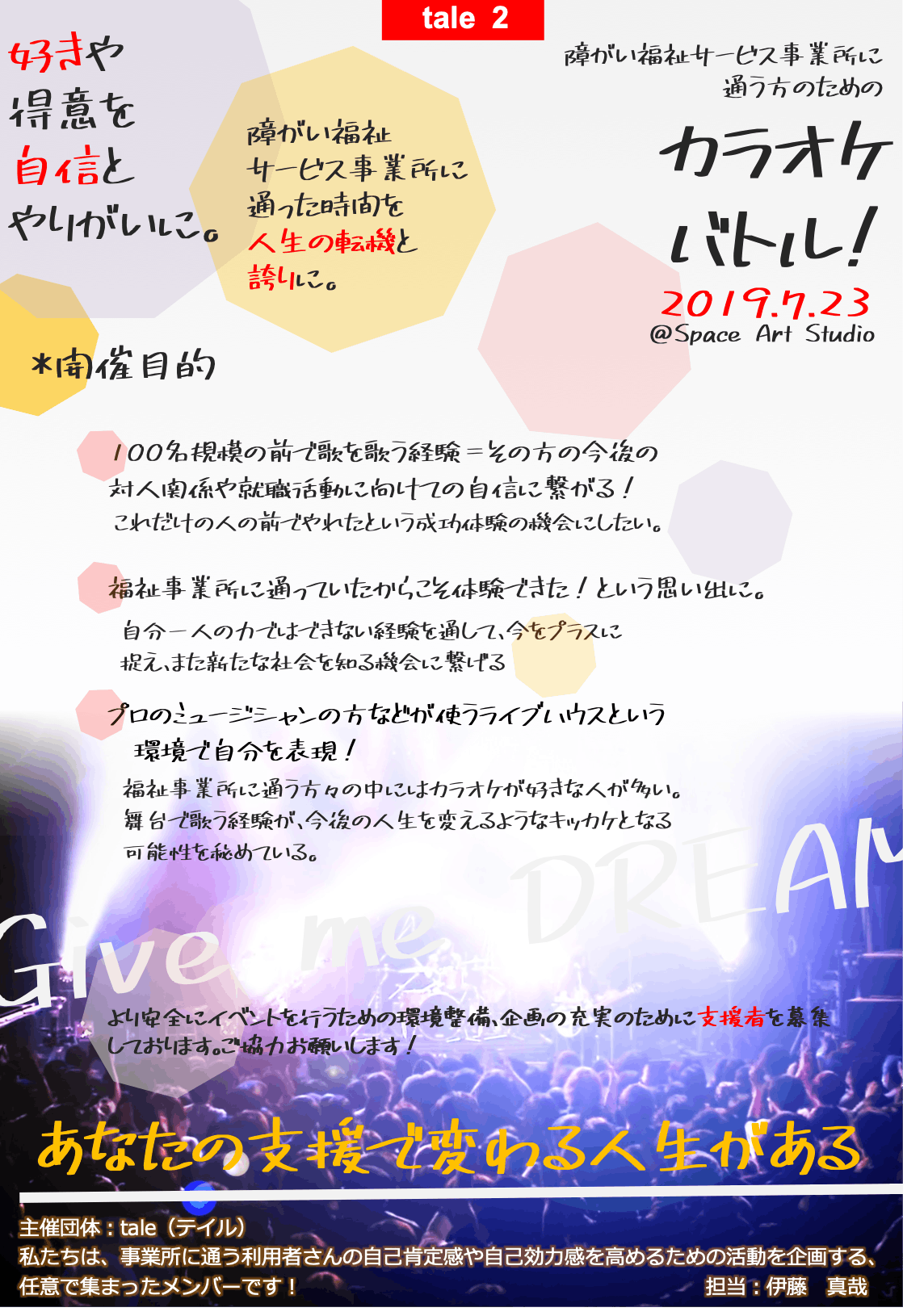 また私自身も経験のない、ミュージシャンなどが舞台として使うライブハウスという設備の中で自分を表現できたら、その方の今後の人生を変えるようなキッカケとなる可能性を秘めている。