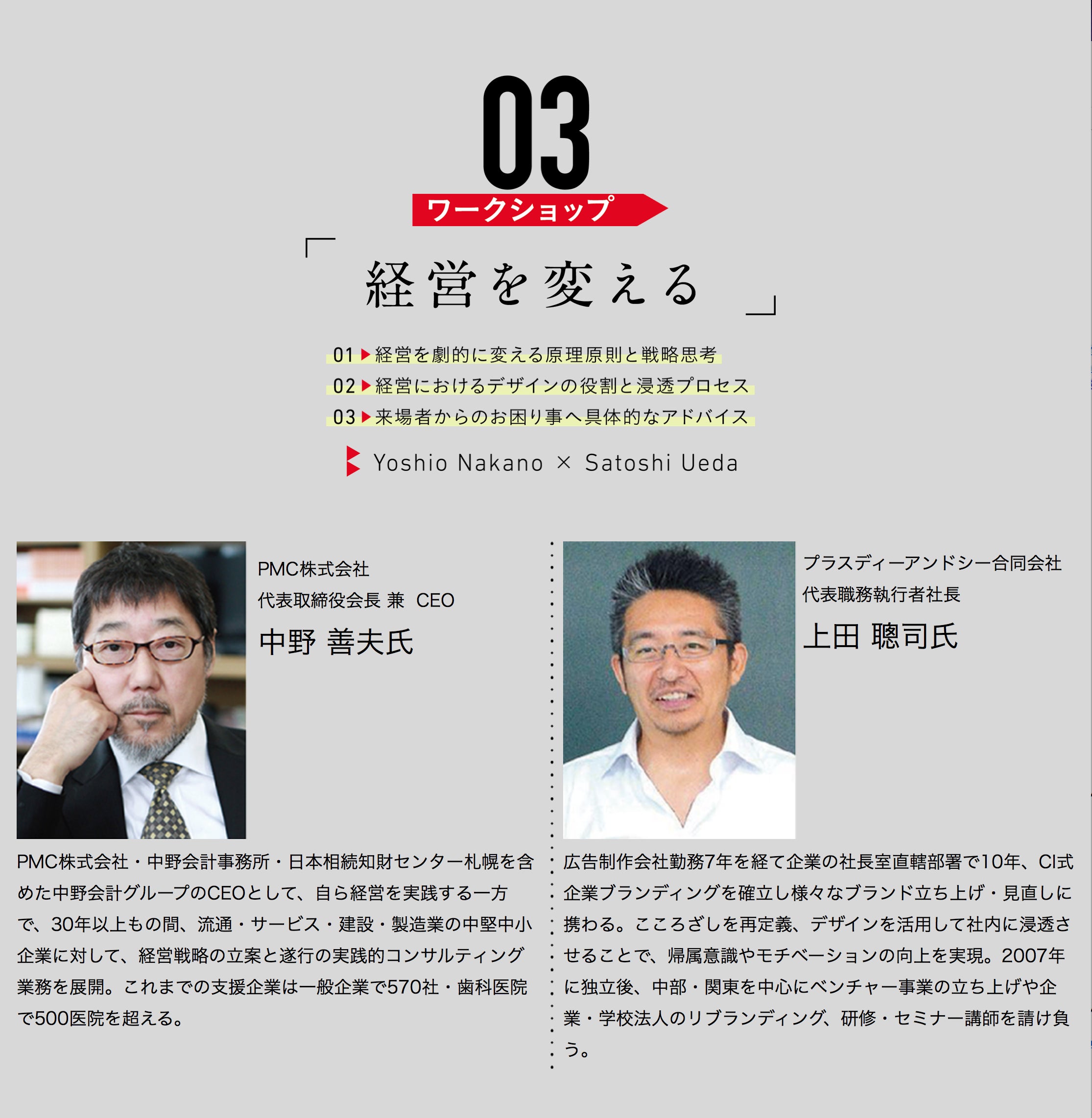 豪華ゲストを交えて、企業経営とデザイン、マーケティング、ブランディングなどについてパネルディスカッションやワークショップを行う場で、主に北海道の企業経営者さんがお集まりになられます。