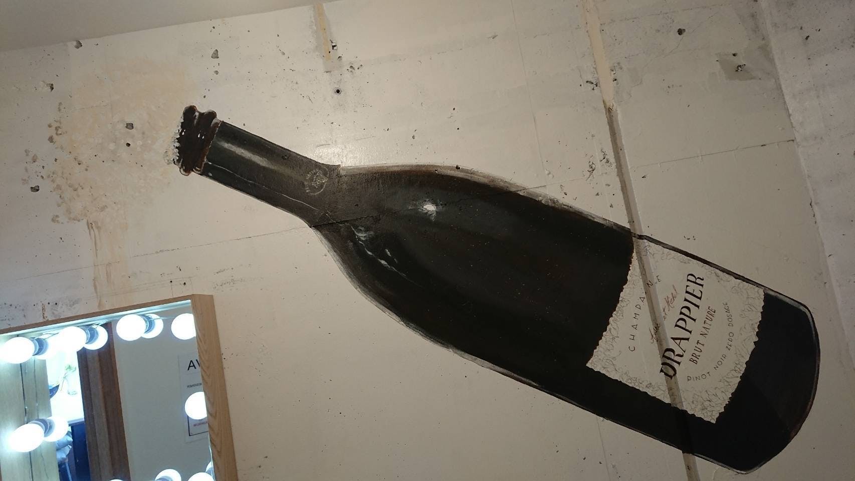 用を足し終えたお客様に、視覚的にも更にシャンパンが飲みたくなる様な壁画を描かせて頂きました。