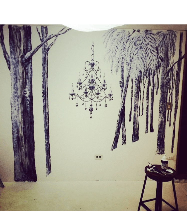 ↑このシャンデリアを活かした冬の雪山 なども描かせて頂いています。