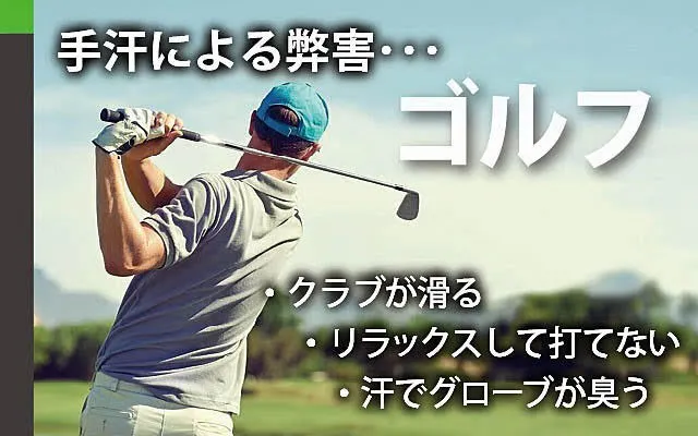 ラウンド中に右打ちの人は基本的に左手にしかグローブをしないため、右手が滑ってクラブがすっぽ抜けてしまう、頭では分かっていても心配でついクラブを握る手に力が入ってしまい、思ったようにプレーを心から楽しめない。だからといって手汗が嫌なので両手ともグローブをはめれば、今まで練習してきた自分のスタイルが変わり余計なミスショットやグローブ異臭の原因につながります。
