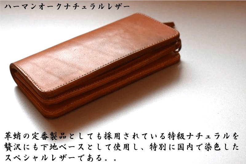 剛健堅牢なアメリカンレザー、ハーマンオークを革蛸オリジナルカラーに染め上げた、極厚財布からコンパクトなカードケースまで多彩なラインナップです。