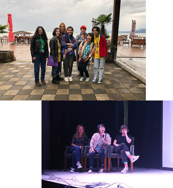 現在はコツコツ作品を送り、海外のフェスティバルへ応募しています。招待されたら訪れ、そこで友達を作るのがとっても楽しみなのです。こちらはジョージア(旧グルジア)の映画祭にて知り合ったアニメーターとアニメを勉強しているジョージアの中学生たち。色々な国の人たちに会うと視野が広がり、また何か作りたいな、とモチベーションが上がります。