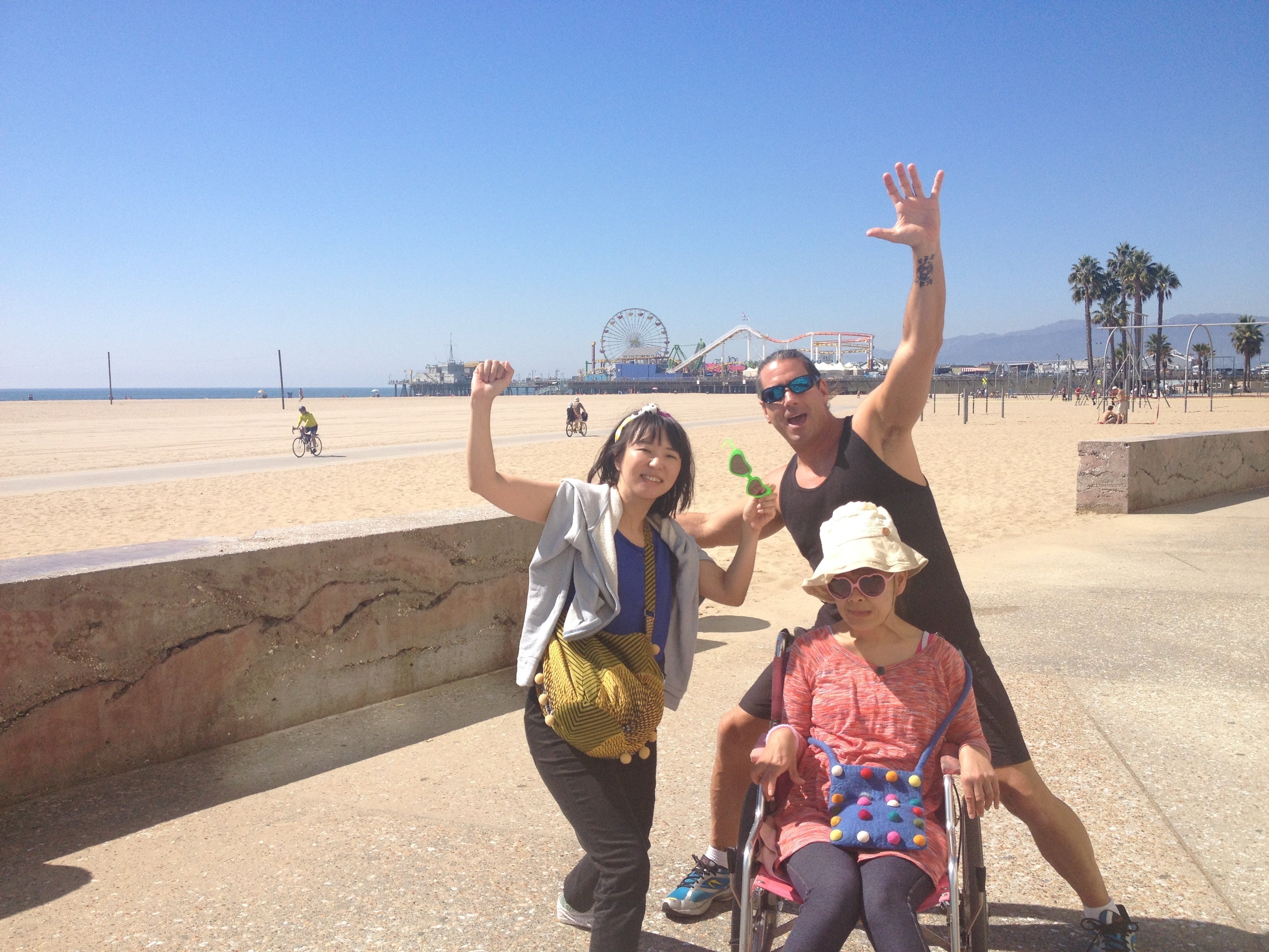 利用者さんによっては「一緒に旅行に行って欲しい」なんていう特殊なものまであります。この写真は、こちらの女性のアメリカの友人に会うために初めて旅行介助をした時のもの。彼女のバイタリティーにはいつも驚かされます。それと、アメリカでは街の人々の障害者に対する接し方がとてもカジュアルでいいな〜、っていう発見もありました。ヘルパーの仕事をしていると、時には自分自身の価値観や考え方に影響受けることもあります。