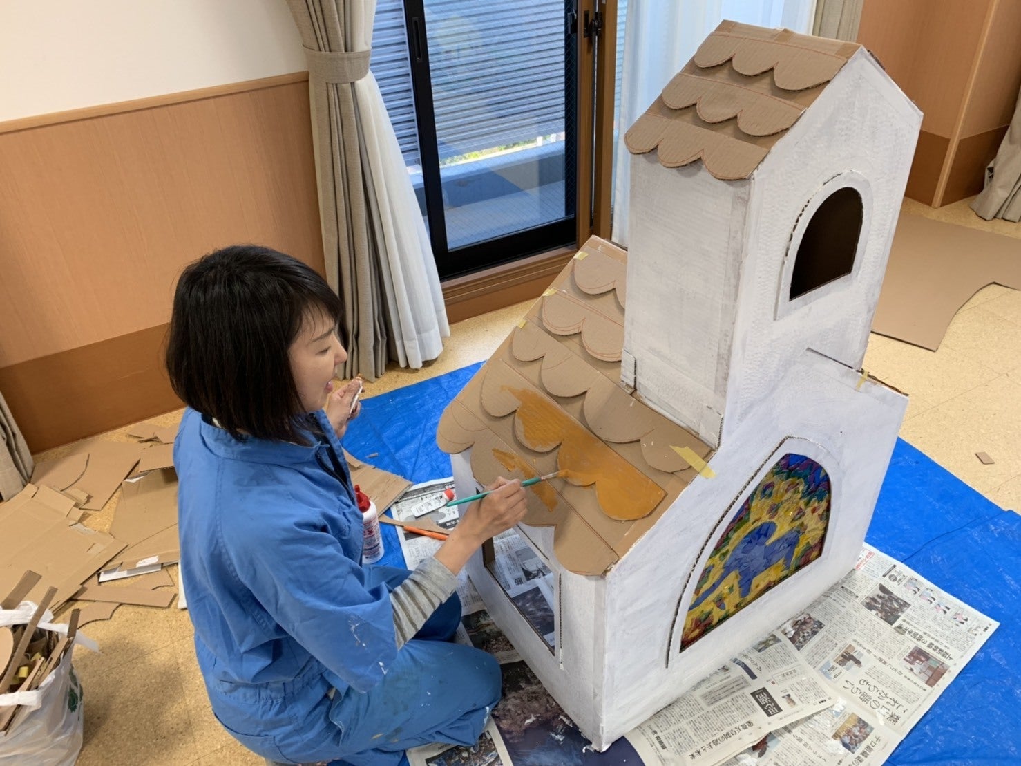 一人一人の趣味や好み、希望を聞いて話し合い、数人の友人の協力の元に制作しています。予算が無いので、なるべくダンボールや発泡スチロールなど、身近にあるものや要らなくなったものなど使用します。が、各作品のテーマにピッタリな素材が全部手元にあるわけではなく、10台分の材料費は大きいです。特に布の値段にはビックリ!
