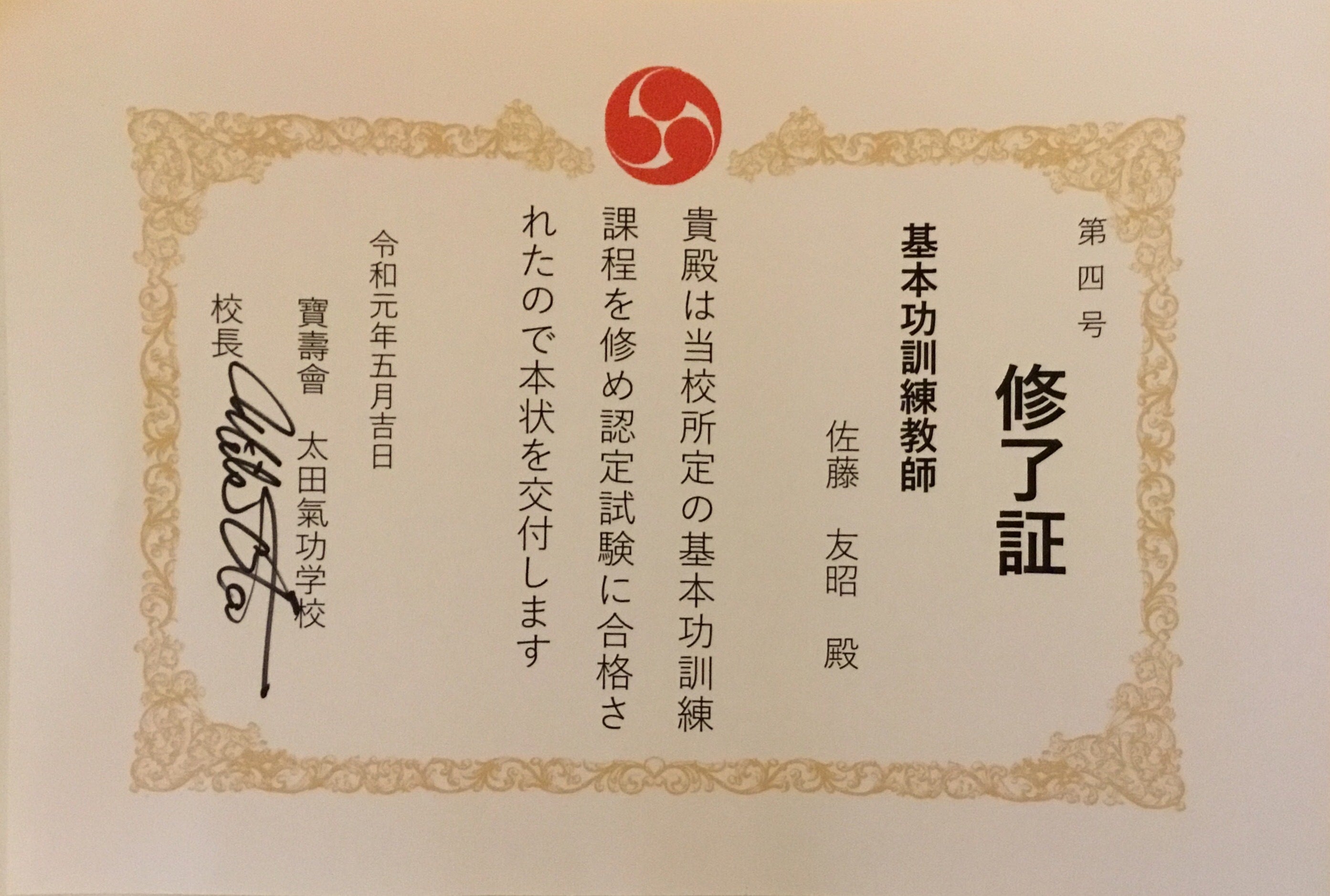 活動報告致します。太田光信先生より修了証を頂きました。有難うございます。