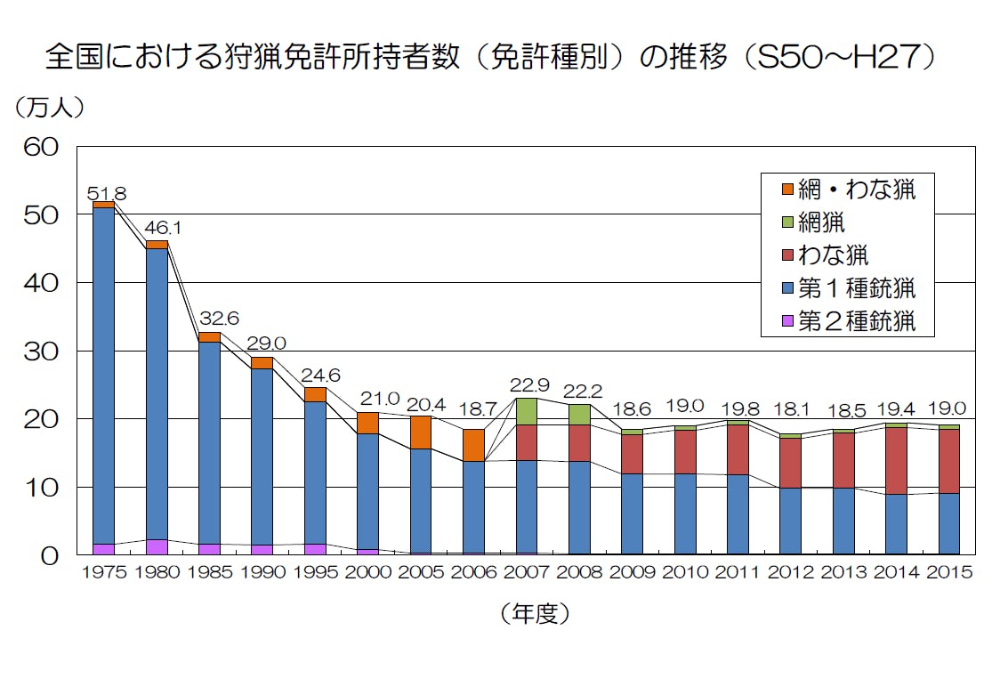 しかしながら農家の減少と同じくハンター人口は急激な高齢化と減少が進み、