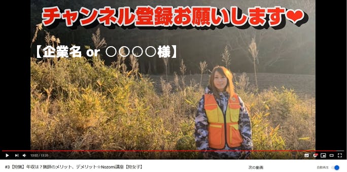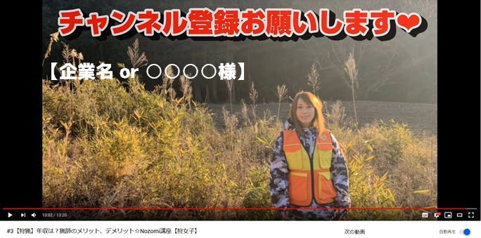 『Nozomi's狩チャンネル』のエンディング画面に企業名orお名前表記と