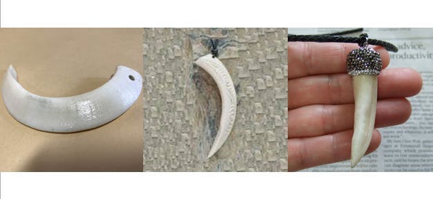 捕獲したイノシシの骨や牙などから手作りで作ったアクセサリーをお送りいたします。