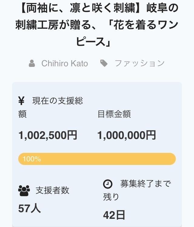 皆さまのあたたかいご支援のおかげで、プロジェクトスタートから1日と2時間ほどで、目標金額の1000000円を達成することができました。