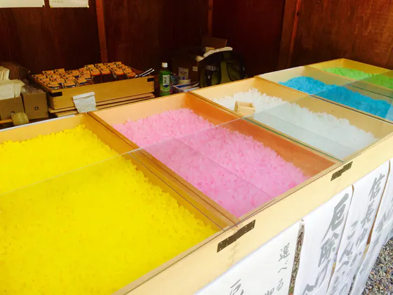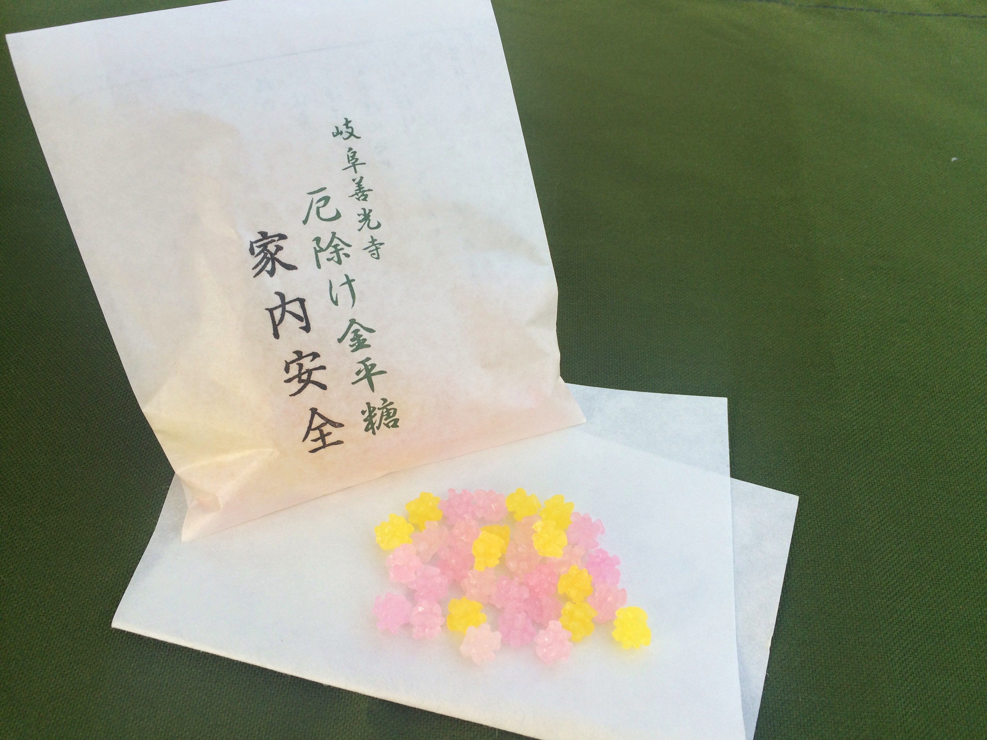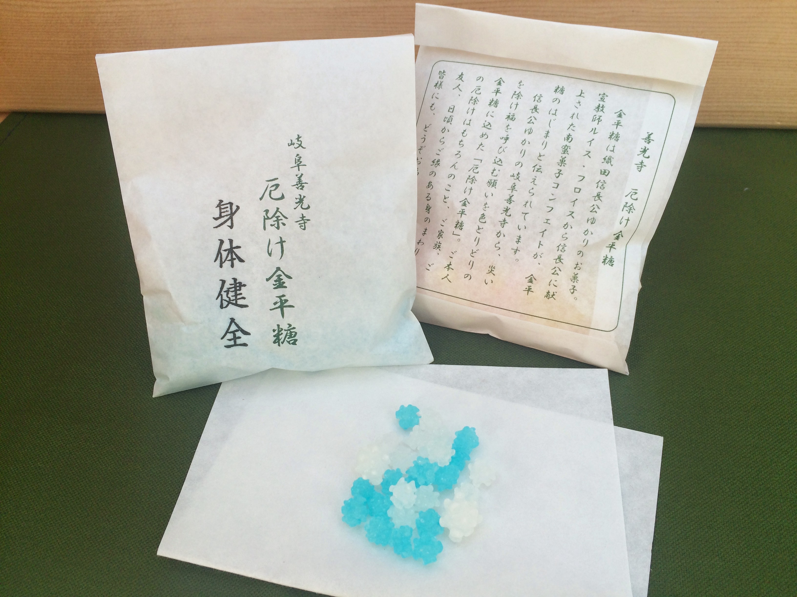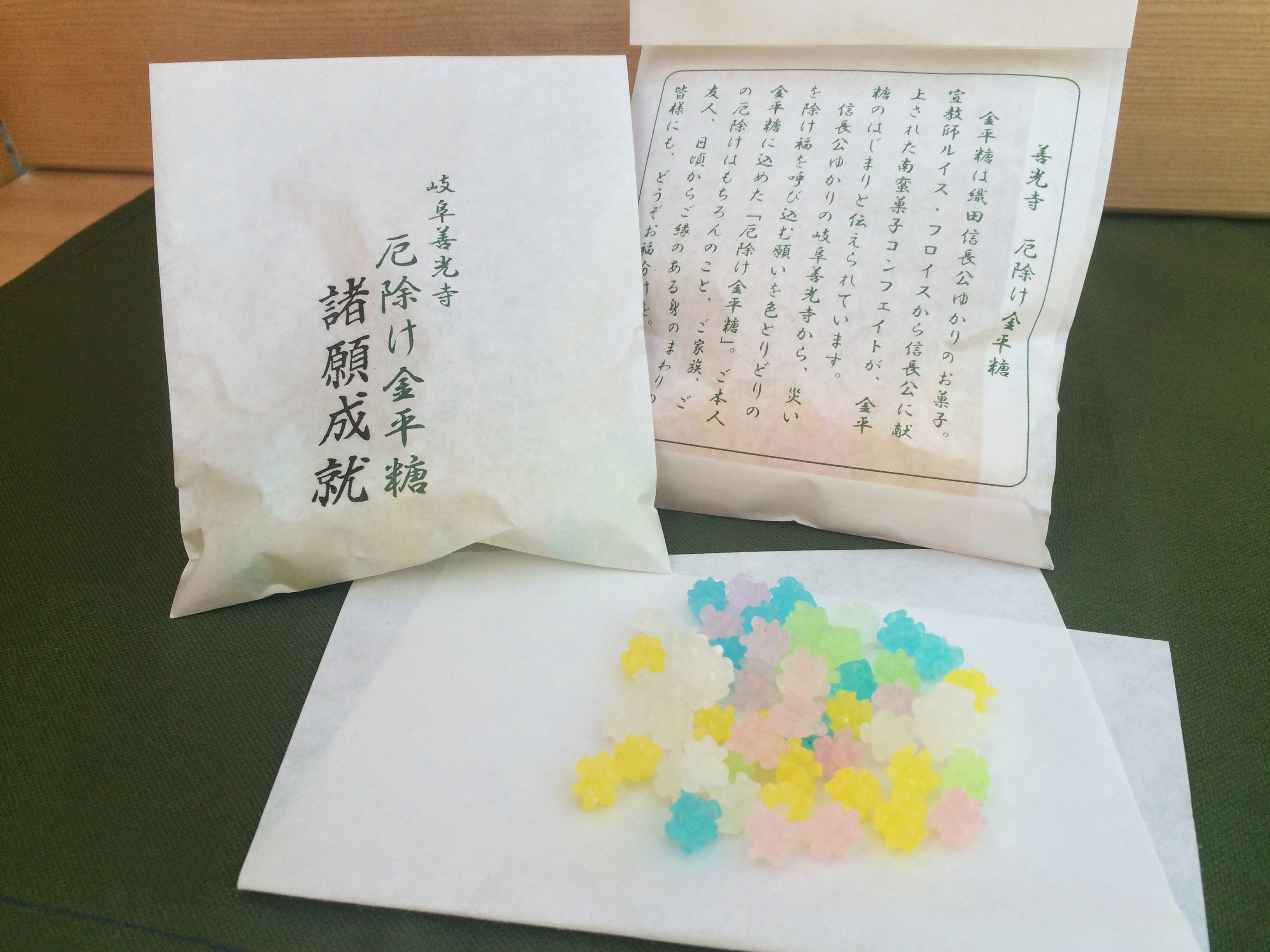 厄除け金平糖は善光寺にて御祈祷しました5色の金平糖を、御利益に合わせその場でブレンドしてくれます。