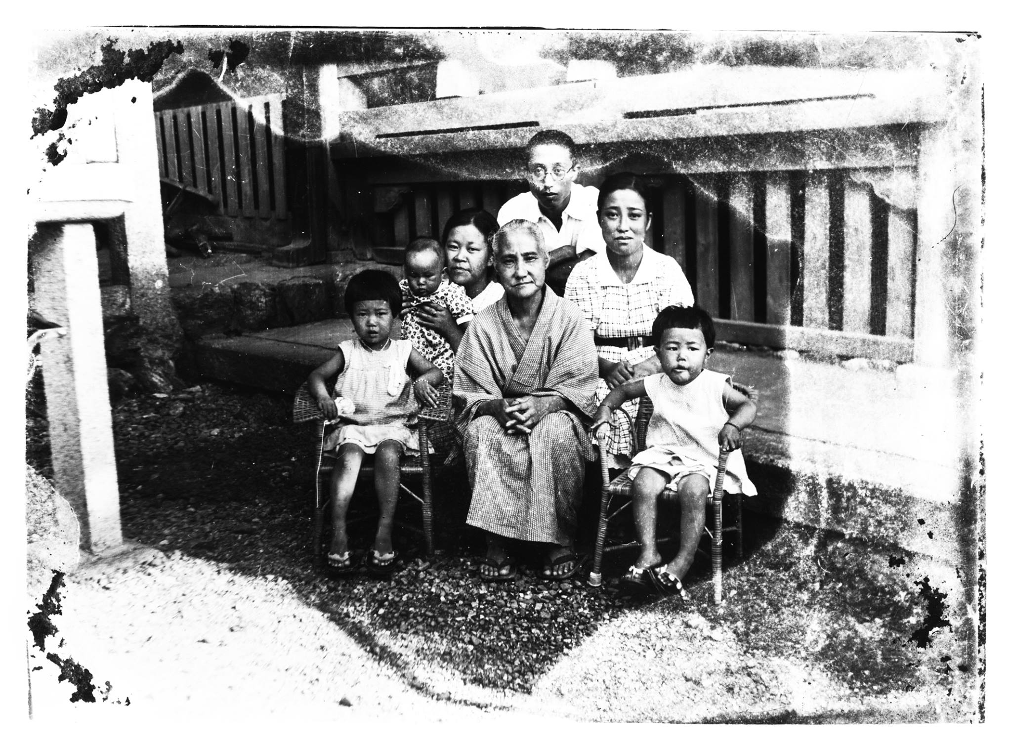 当時の松枝一家。真ん中後ろの男性が秀猛さん。赤ちゃんを抱いているのが私の祖母。