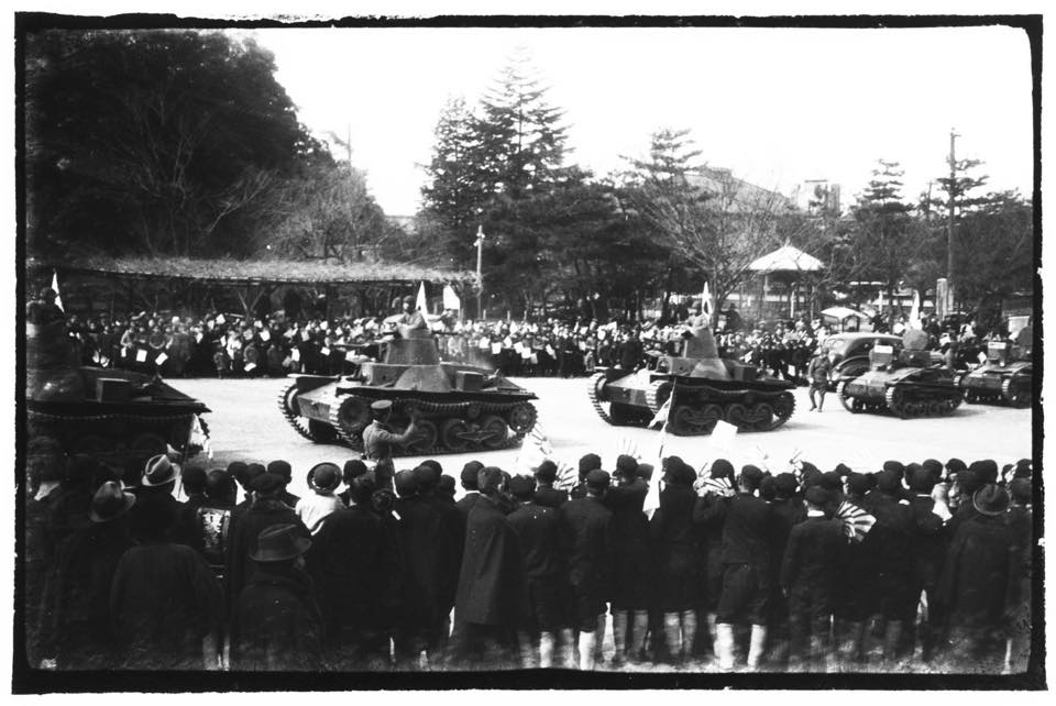 善光寺前の広場を戦車が走っています