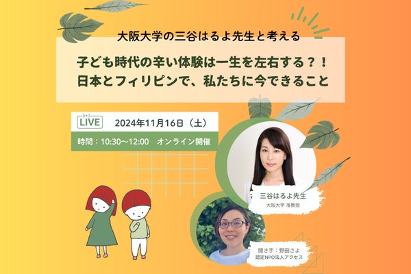 大阪大学の三谷はるよ先生と考える子ども時代の辛い体験は一生を左右する?!日本とフィリピンで、私たちに今できること