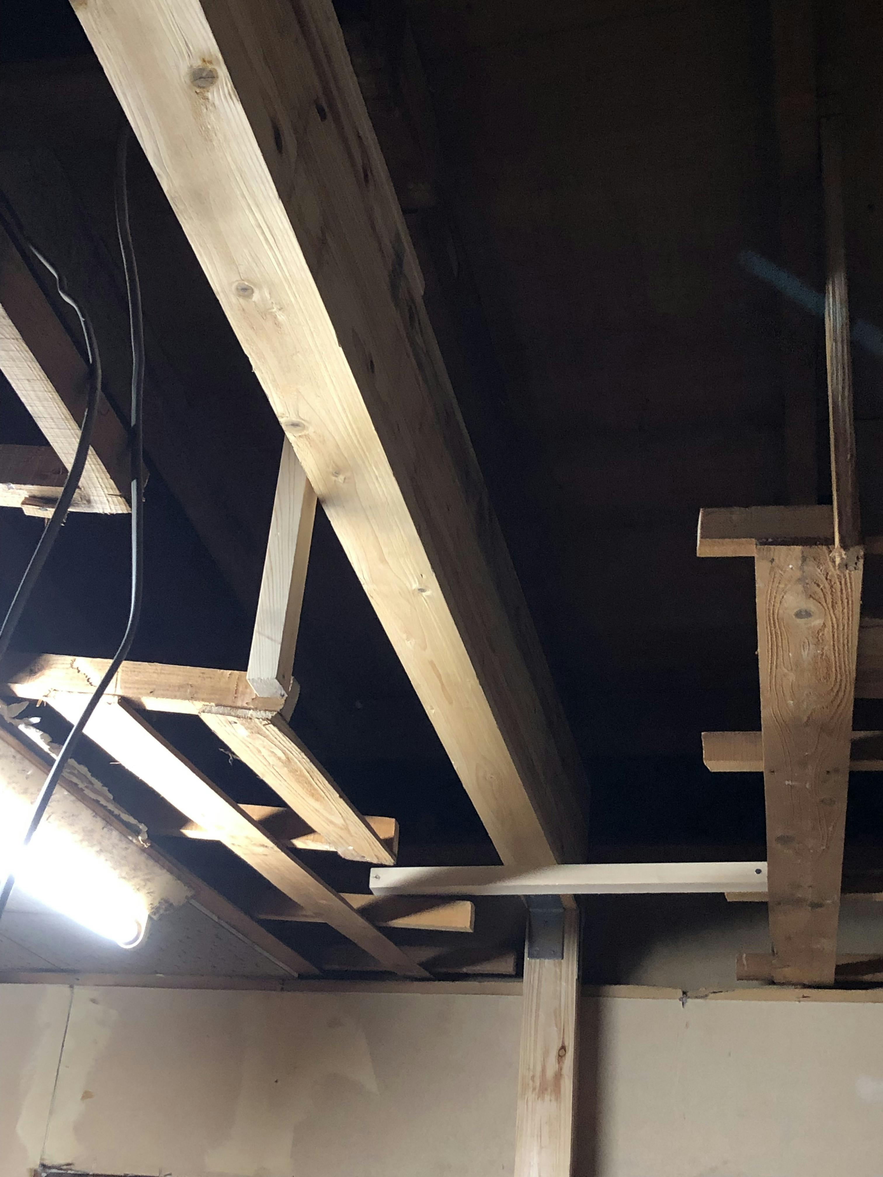 さて、活動報告ですが画像の通りようやく梁入れを終え厨房スペースの真ん中の柱を抜くことができました!