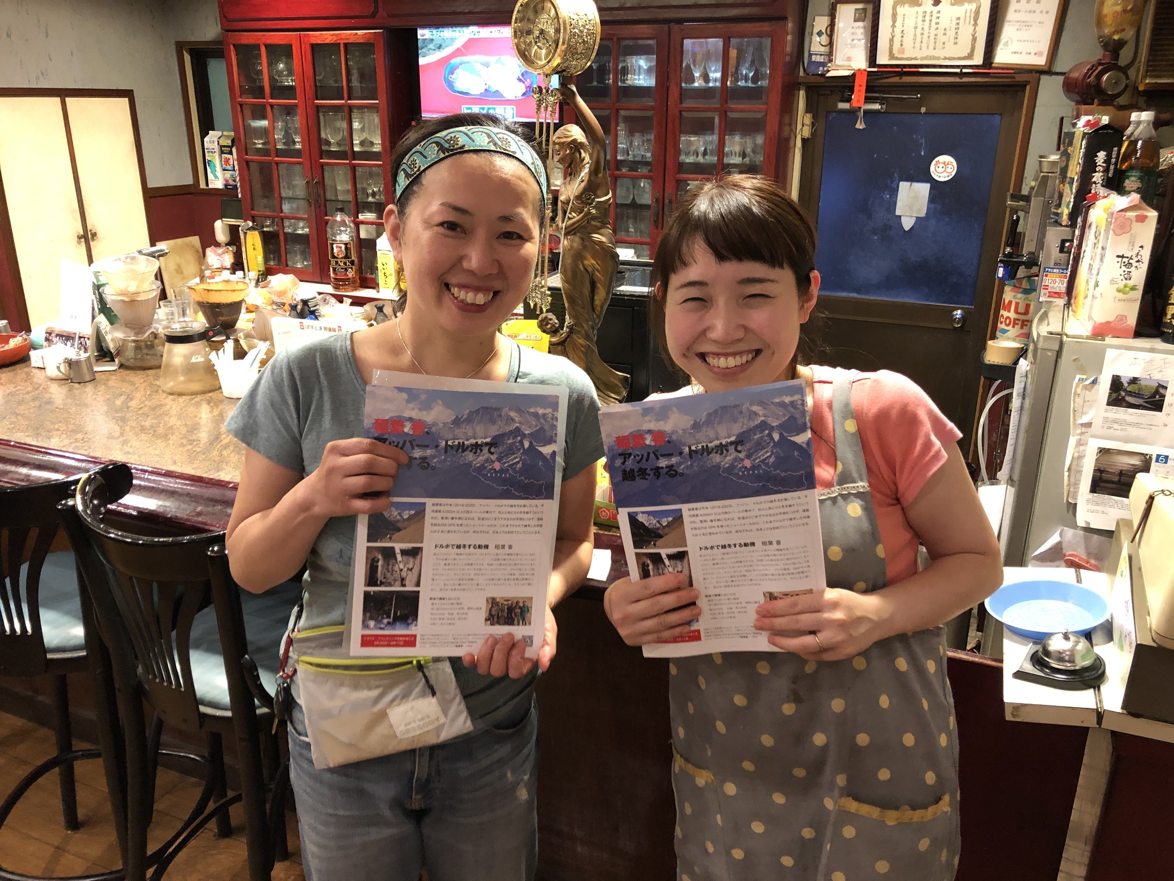 そこで、下山後は必ず温泉と夕食に行くのですが、お気に入りの場所、「里」に、フライアーをおかして頂きました!